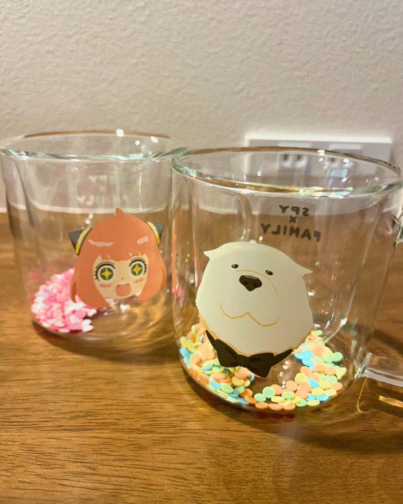 めっちゃかわいくて、ボンドとアーニャのダブルウォールグラスを購入!☟