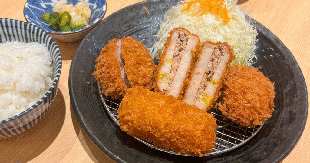 ヒレカツ・メンチカツ・れんこん挟み上げ・カニ入りクリームコロッケでした。