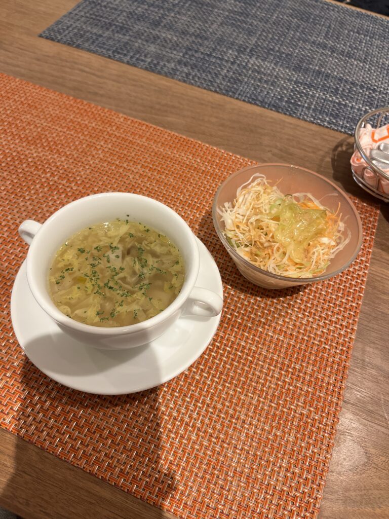 ランチメニューにはサラダとスープがついていて、どちらもちゃんとおいしかったです。