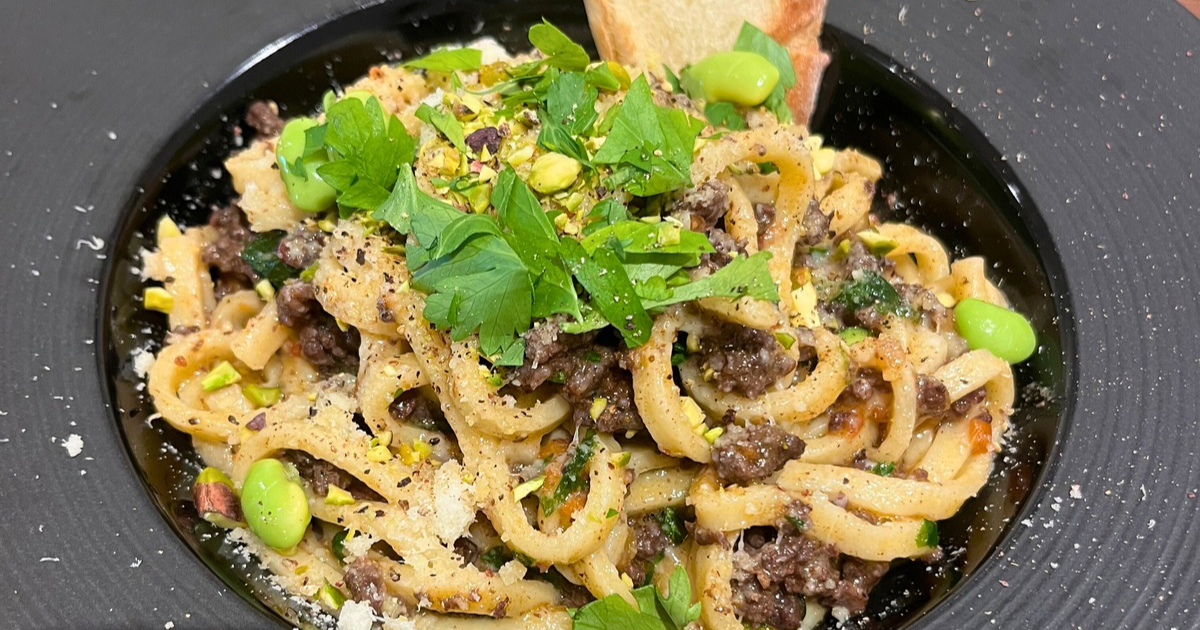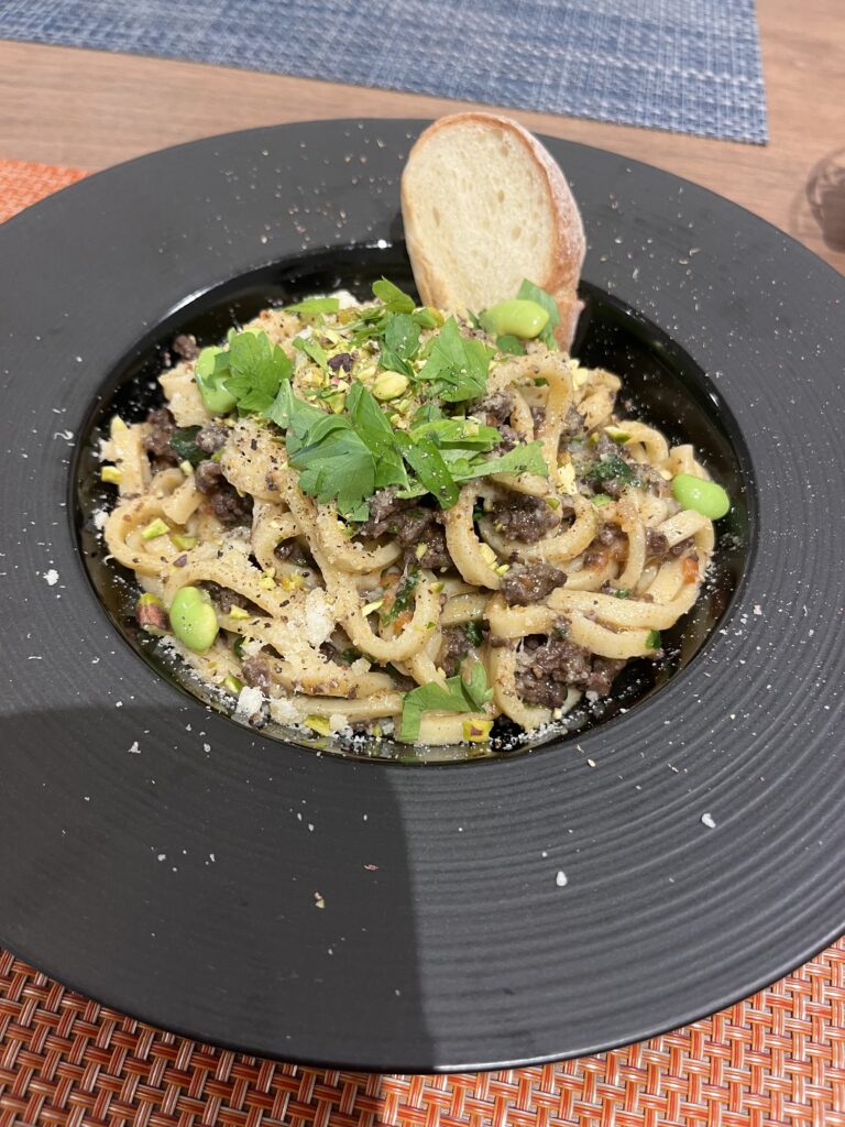 私の料理が少し遅れていたのですが、店員さんが丁寧に声をかけてくださり、そのうえご厚意でボロネーゼをグレードアップして提供してくれました!