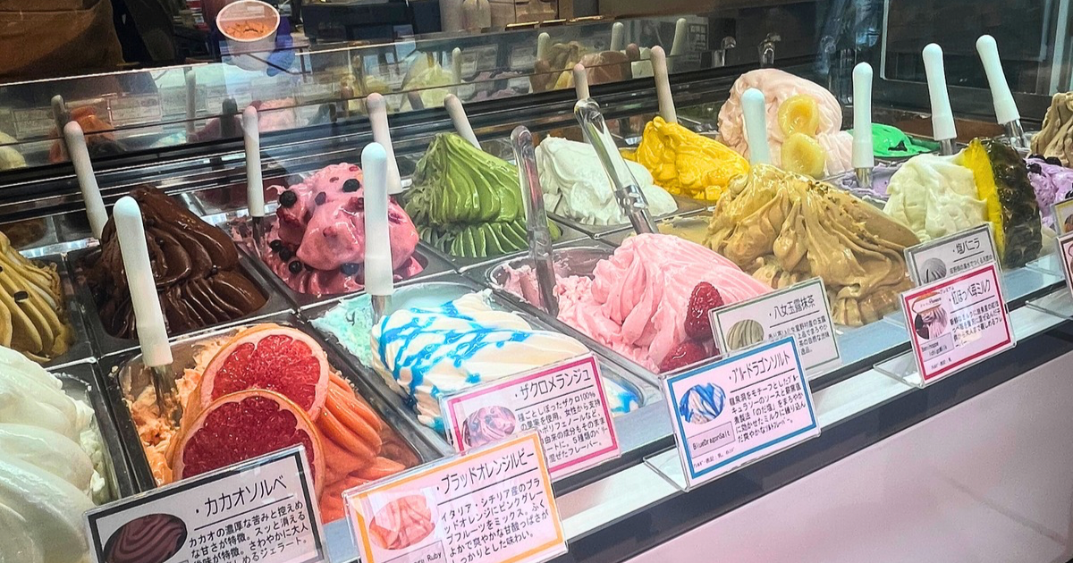 色とりどりのジェラートが並ぶショーケースのワクワクが止まらない✨