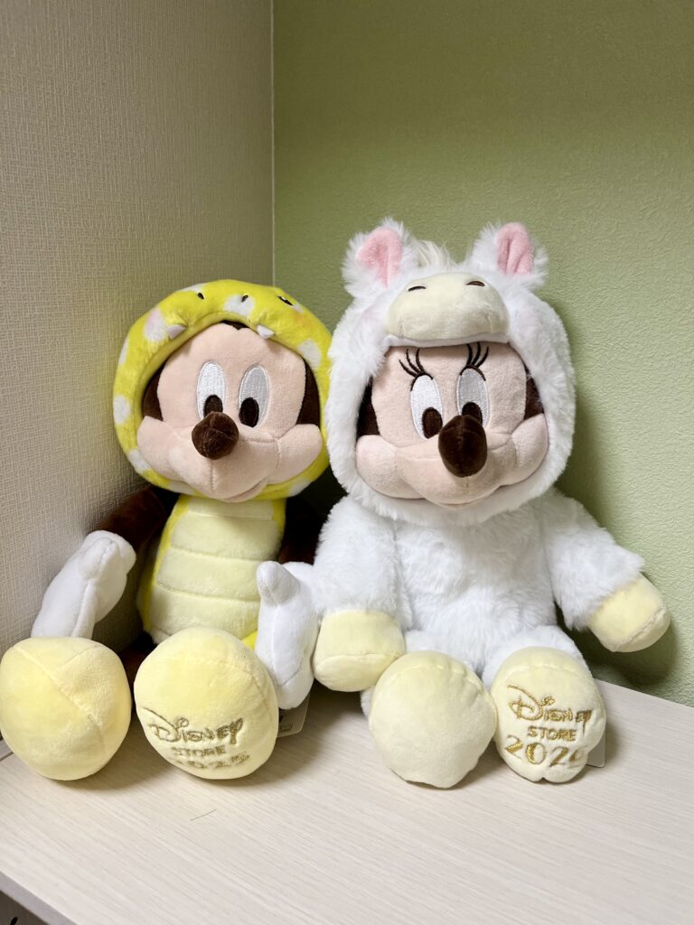 干支デザインのぬいぐるみは必ず入ってるアイテムで、ミッキーかミニーのどちらかが入ってます。