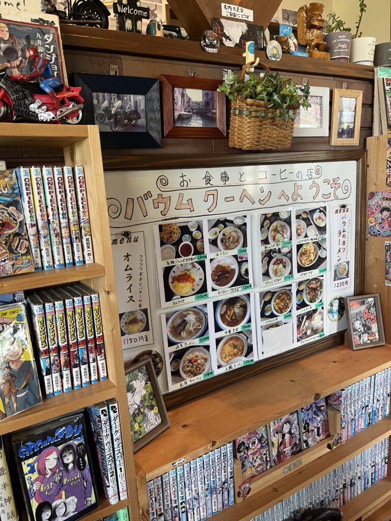 店内には漫画やフィギュアがたくさん並べられていて、アニメ・漫画好きにはたまらない雰囲気です。