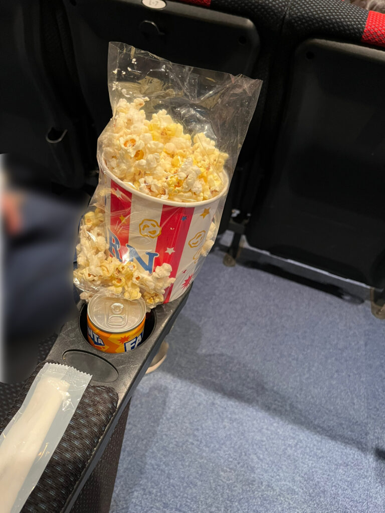 スタッフさんが、ポップコーンを毎回山盛りにしてくれるのが好きです!