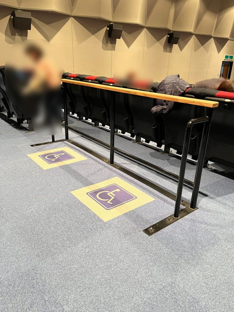 ユニバーサルトイレまでの坂は少し大変ですが、設備は整っていて、車いすで落ち着いて映画を観れる映画館です。